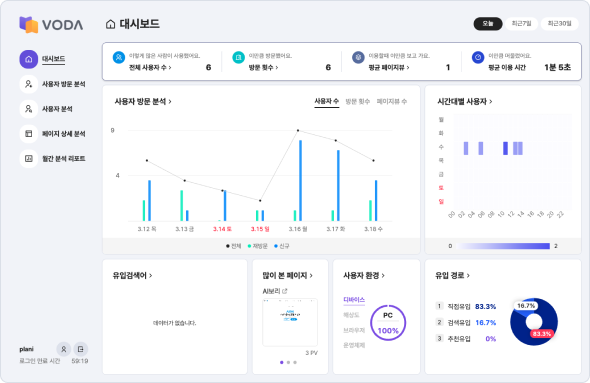 보다애널리틱스(VODA)는 클릭·스크롤·전환 흐름을 시각화하고,