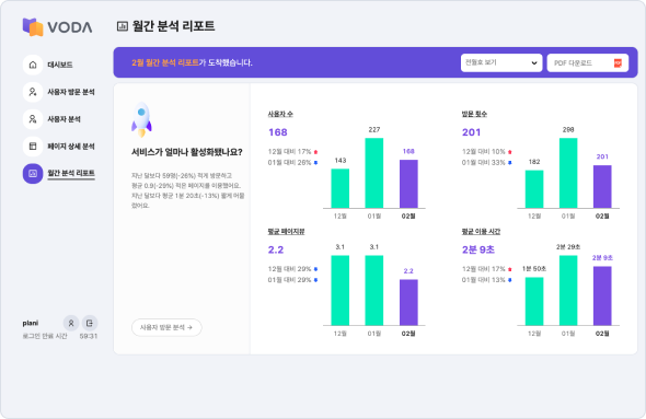 자동으로 발송됩니다.핵심 지표 요약 리포트가 매달 1일 자동 생성됩니다.